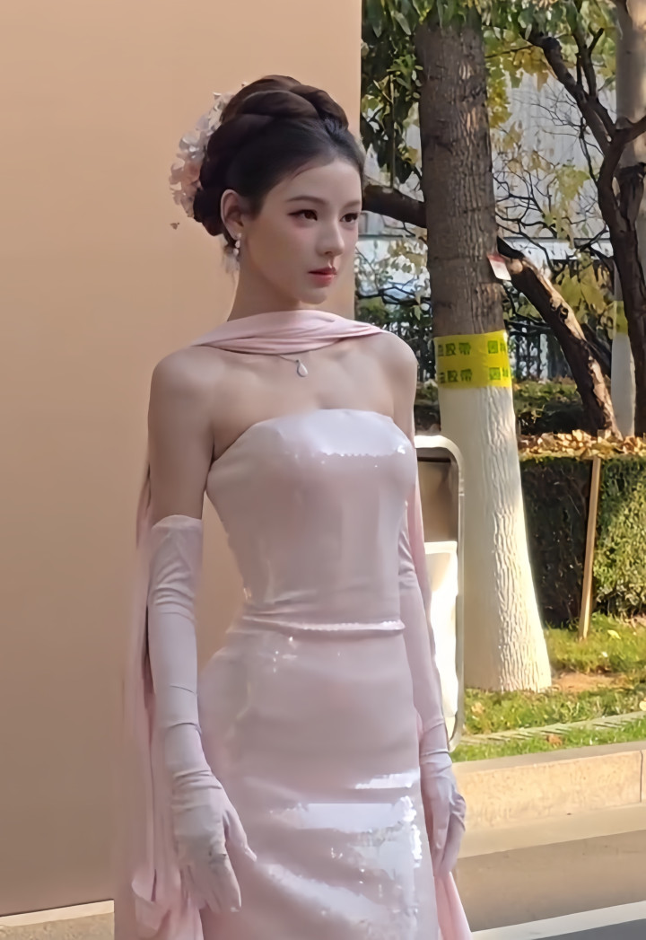 张予曦这次的粉色礼服一出场,弹幕全是“迪士尼在逃公主”。