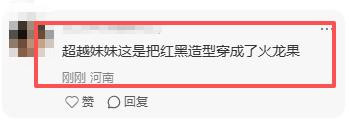 “超越妹妹这是把红黑造型穿成了火龙果”、