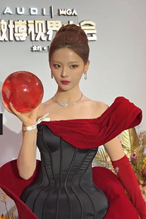 杨超越这次选了条红黑渐变的LouBe礼服,红得像燃烧的玫瑰,黑得像深夜的叛逆。